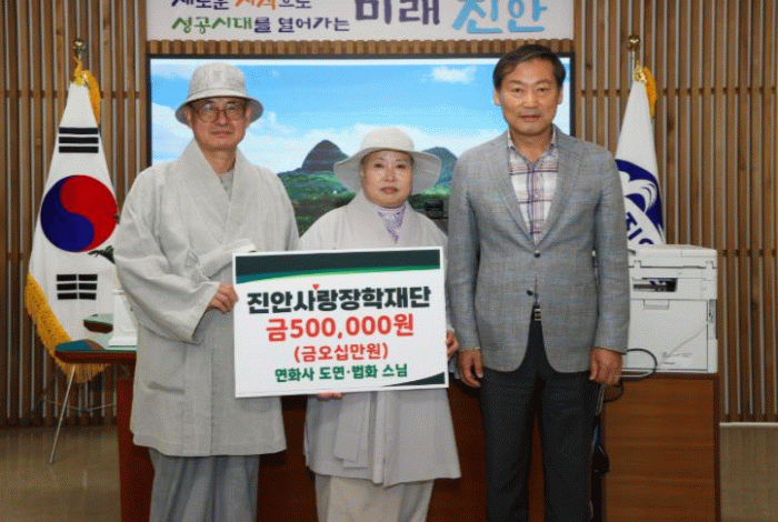 이에 진안사랑장학재단 전춘성 이사장은 “갑작스러운 상황에서도 어려운 학생들을 위해 따뜻한 마음을 모아주신 도연스님과 고 김옥순 여사의 가족분들께 진심으로 감사드린다”라며, “기탁해주신 장학금은 지역 학생들이 꿈을 키우고 학업에 정진할 수 있도록 소중하게 사용하겠다.”라고 화답했다.