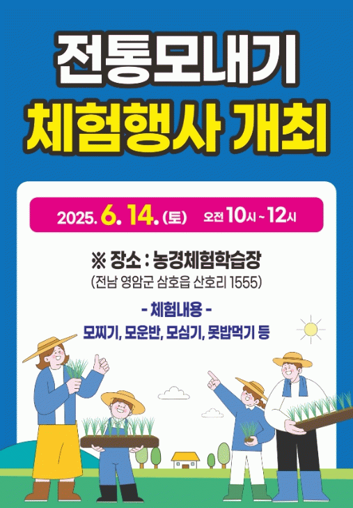 김옥경 전남도농업박물관장은 “이번 전통모내기 체험과 주말농부장터는 우리 농업의 소중한 유산을 직접 체험하고, 지역 농산물과 문화를 가까이에서 만날 뜻깊은 행사”라며 “농촌의 정과 활기를 체험하는 기회가 되길 바란다”고 말했다.