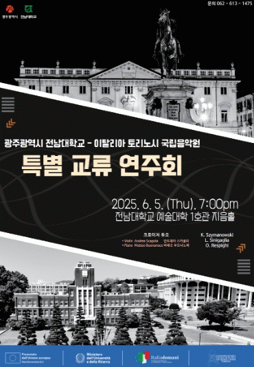 이 공연은 전남대학교와 토리노 주세페 베르디 국립음악원의 특별교류 연주회로 마련됐다.