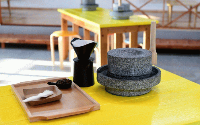 ‘대신리 커피 체험장’은 맷돌을 이용해 직접 원두를 갈아 커피를 추출하고 마시는 체험을 제공한다.