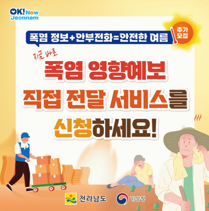가족이 거주하는 지역에 폭염 주의단계 이상이면 카카오톡 앱 메시지를 제공, 고령자가 많은 전남에서 부모님의 건강을 챙기는데 큰 도움이 될 것으로 기대된다.