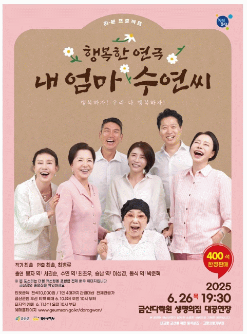 금산다락원 관계자는 “이 연극은 엄마가 아닌 한 여자로서의 삶을 진솔하게 담아 행복이 무엇인지도 모른 채 살아가고 있는 사람들에게 작은 위로를 전할 예정”이라고 말했다.