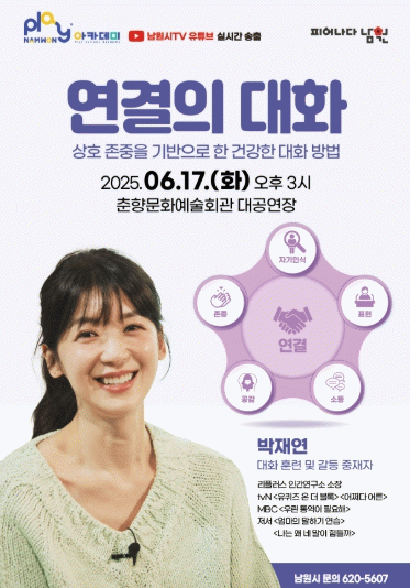 남원시장(최경식)은 “이번 Play남원 아카데미는 일상에서 반복되는 오해와 갈등을 돌아보고, 서로를 더 깊이 이해할 수 있는 대화의 힘을 배우는 소중한 시간이 될 것이다.”라고 말했다.