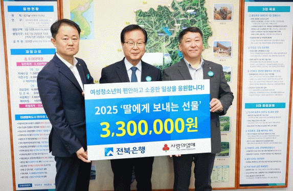 유희태 완주군수는 “전북은행의 지속적인 관심과 나눔 덕분에 복지 사각지대에 놓인 여성청소년들이 더 건강하게 성장할 수 있는 기반이 마련되고 있다”며, “후원받은 보건위생용품은 꼭 필요한 이들에게 정성스럽게 전달하겠다”고 밝혔다.