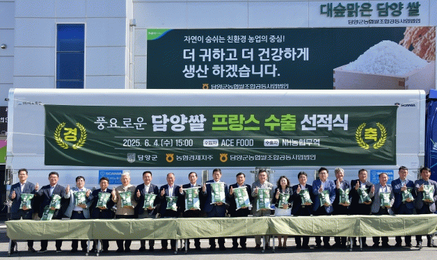 이날 행사에는 정철원 담양군수, 장명영 담양군의회 의장, 김범진 농협중앙회 총회의장 등 30여 명이 참석했으며, 프랑스 파리로 ‘풍요로운 담양쌀’ 18톤이 선적됐다.