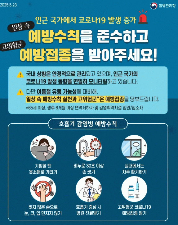코로나19 등 호흡기 감염병 예방을 위해서는 유증상 시 마스크 착용, 비누로 30초 이상 손 씻기, 주기적 환기 등 개인 방역수칙 준수가 무엇보다 중요하다.