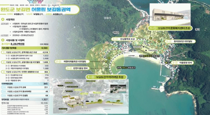 군은 5일 해양수산부 ‘2026년 어촌 분야 일반농산어촌개발사업’ 공모 사업 선정 결과 ‘어울림 보길동 권역(보길면 중리·여항리)’이 ‘행복한 삶터 조성 사업’에 선정되어 총 사업비 80억 원을 확보했다고 밝혔다.