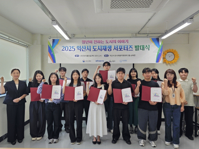 시 관계자는 "도시재생은 공간의 변화에 머물지 않고, 지역의 이야기와 사람의 가능성을 함께 복원하는 일"이라며 "이번 서포터즈 활동이 익산의 도시재생 이야기를 많은 사람에게 전달하고, 청년이 지역 변화의 주체로 활약하는 좋은 사례가 되길 기대한다"고 말했다.