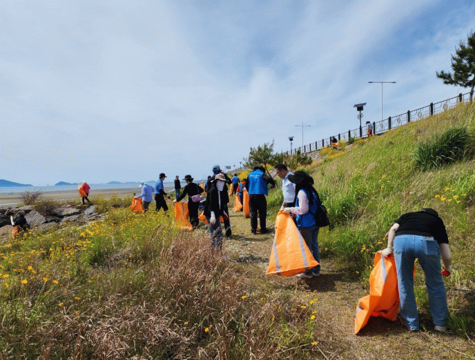 참가자들은 두 개 조로 나뉘어 방조제 주변에 방치된 플라스틱, 폐어구, 스티로폼 등 다양한 해양폐기물을 집중 수거했으며, 그 결과 약 3톤에 달하는 해양쓰레기를 수거하는 성과를 거두었다.