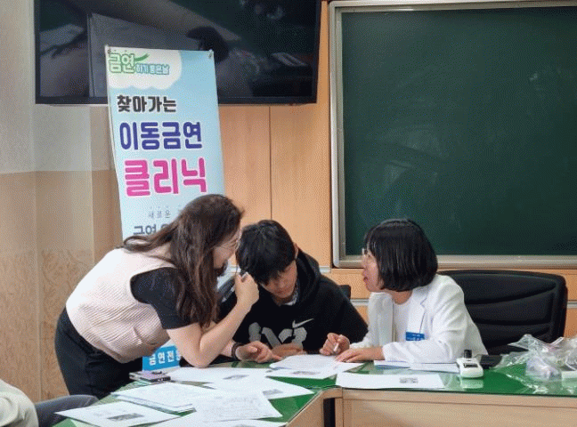 이번 이동 금연클리닉은 몽골유학생 8명이 참여 언어 소통의 어려움에도 불구하고 학교 내 통역교사의 협조로 원활한 상담과 교육이 이루어졌다.