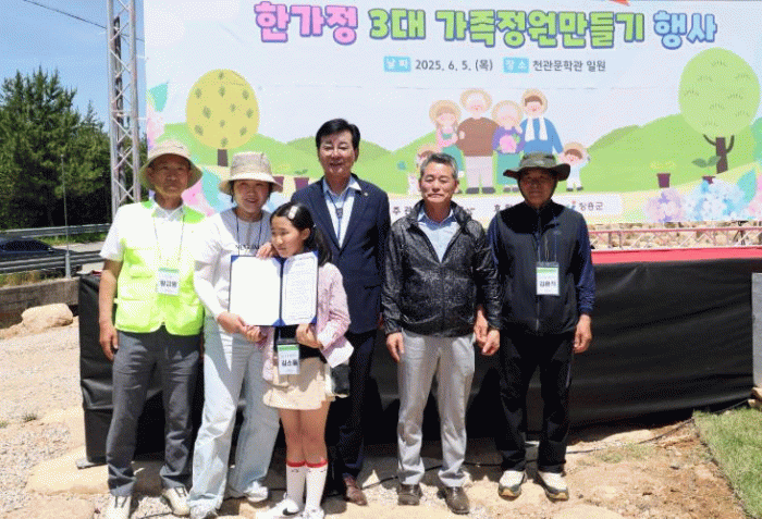 행사에 참여한 3대 가족과 (사)숲속의 전남 회원과 지역주민 등 150여 명은 가족사랑과 노벨문학도시 장흥 발전의 의미를 담아 수국정원을 조성하고 가족 이름표도 달았다.