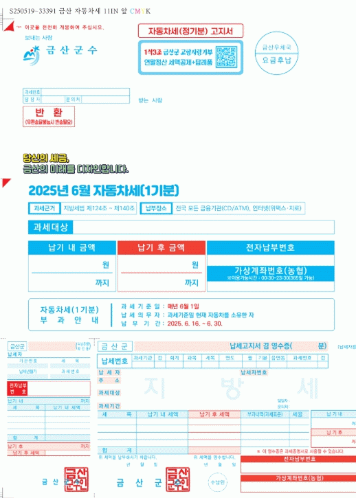 아울러 고지서에 인구 전입 지원 등 군정 주요 시책을 담은 큐알(QR)코드를 함께 삽입해 주민들이 스마트폰으로 간편하게 관련 정보를 확인할 수 있도록 했다.