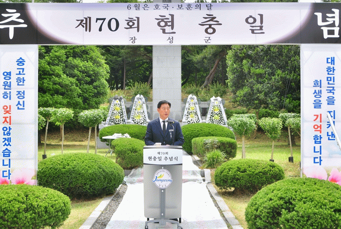 김한종 장성군수는 추념사에서 “나라를 위해 기꺼이 목숨을 바친 순국선열과 호국영령의 희생을 가슴에 새기는 뜻깊은 시간”이라며 “앞으로도 국가유공자와 유가족 예우에 최선을 다하겠다”고 말했다.