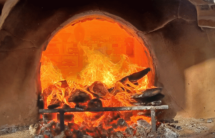장작가마는 이틀간 예열을 거쳐 3일째 본불 소성으로 이어지고, 불꽃의 흐름에 따라 달라지는 도기 색감은 장작가마 소성에서만 볼 수 있는 아름다움으로 알려져 있다.