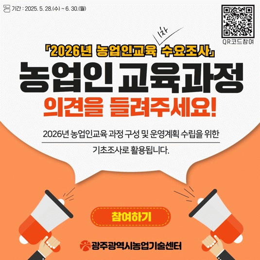 김시라 광주농업기술센터 소장은 “현장에 실질적으로 필요한 교육과정 설계를 위해서는 농업인 한 사람 한 사람의 목소리가 중요하다”며 “농업의 변화와 농촌사회의 다변화에 대응할 수 있는 교육체계를 구축하는 데 이번 수요조사가 중요한 밑거름이 될 것이다”고 말했다.