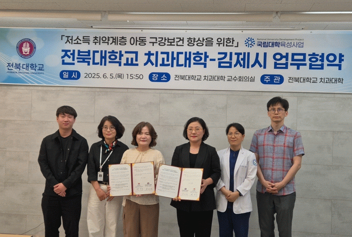 이날 협약에 따라 전북대학교 치과대학은 김제 지역 취약계층 아동들에게 구강 상태에 맞는 맞춤형 의료서비스를 제공함으로써 치아 건강을 유지할 수 있도록 돕고, 치아관리의 중요성과 관리 방법에 대해 교육하게 된다.
