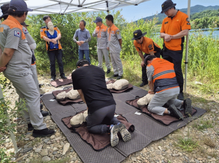 주요 교육 내용으로 △물놀이 지역 안전관리 기본 △구명환·구명로프 등 기초 수난 장비 사용법 △구조 대상자 합동 구조 훈련 △심폐소생술 △신속한 응급 대응을 위한 인명구조 훈련 등이 포함됐다.