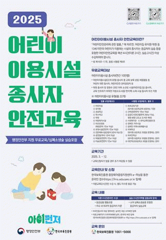 해당 교육은 ‘어린이 안전관리에 관한 법률’에 따른 법정 의무교육으로, 학원·어린이집 등 13세 미만 어린이가 주로 이용하는 시설의 종사자는 매년 응급처치 실습을 포함한 4시간 이상의 안전교육을 이수해야 한다.