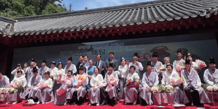 이날 주암댐 주변 지역 4개 시군 14쌍의 노부부와 가족, 내빈, 하객 등 총 200여 명이 참석해 황혼을 맞이한 부부들의 사랑과 헌신을 축하했다.