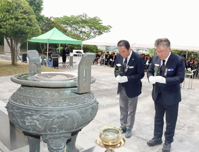 추념행사는 오전 10시에 전국적으로 울리는 사이렌 취명에 맞춰 묵념을 시작으로 조총 발사 및 내빈 헌화와 분향, 학생대표 헌시, 추념사, 현충일 노래 제창 순으로 진행됐으며 참석자 모두 경건한 마음으로 나라 사랑의 의미를 되새겼다.