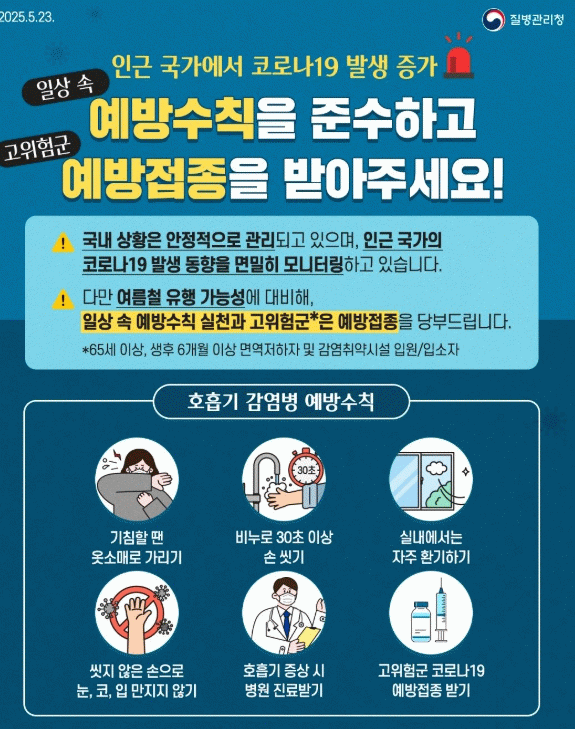 최근 홍콩, 중국, 대만 등 인근 아시아 국가에서 코로나19 확진자 수가 증가하고 있으며, 국내에서도 기온 상승과 함께 밀폐된 실내활동이 늘어나면서 재유행 우려가 커지고 있다.