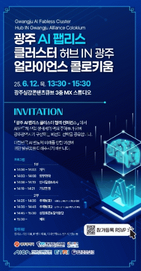 한편 광주시는 이날 ‘AI 팹리스 클러스터 허브 인 광주, 얼라이언스 콜로키움’ 행사도 연다. 이 행사는 광주시, 한국팹리스산업협회, 광주정보문화산업진흥원, 광주인공지능융합사업단, ETRI 호남권연구본부, 광주테크노파크 등이 공동 주최한다.
