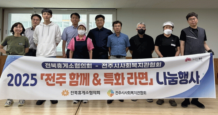 전주시와 전북휴게소협의회(회장 김형구), 전주학산종합사회복지관은 10일 전주학산종합사회복지관에서 호남고속도로 정읍녹두장군휴게소(순천·천안방향) 재능나눔봉사단과 ‘라면’을 매개로 1인 가구 등 위기가구 발굴을 위한 ‘전주함께&특화라면’ 나눔 행사를 펼쳤다.