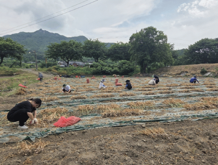 이날 마늘 캐기 및 정리 작업 등을 진행하며 농가에 작은 힘을 보탰다.