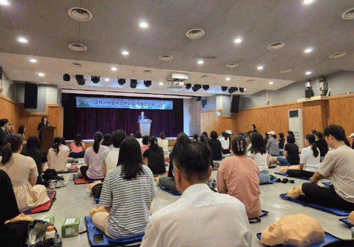 이번 교육은 금산군 어린이집연합회 주관으로 진행됐으며 임영미 대한심폐소생술교육원 대표가 가정에서 응급상황 발생 시 초기 대응 능력을 높이기 위한 실습 교육을 진행했다.