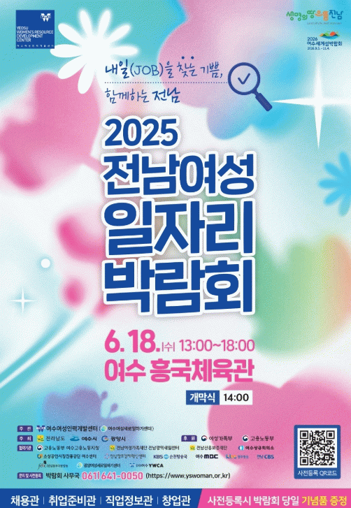 전라남도와 여수시가 주최하고 여수여성인력개발센터가 주관하는 이번 박람회는 ‘내일(job)을 찾는 기쁨, 함께하는 전남’을 주제로 150개 기업(현장채용 30개, 간접채용 120개)이 참여해 현장에서 맞춤형 일자리 정보를 제공한다.