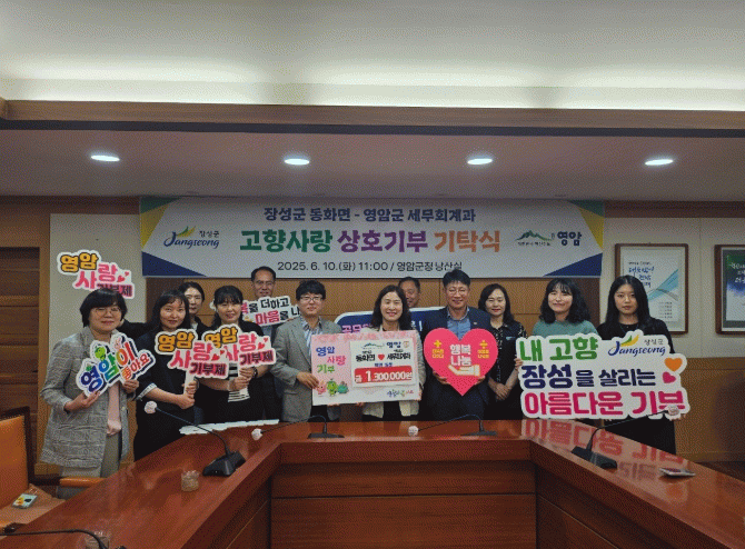 신정숙 장성군 동화면장은 “영암군과 고향사랑기부로 교류협력의 물꼬를 터서 기쁘다. 이번 상호기부가 두 지역의 우호와 협력을 더 돈독히 하는 계기가 되길 바란다”고 말했다.