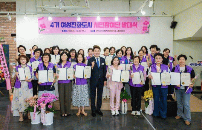 이날 발대식에서는 4기 여성친화도시 시민참여단 위촉장 수여와 함께, 임기를 마친 우수 활동 단원에게 감사장을 전달했다.