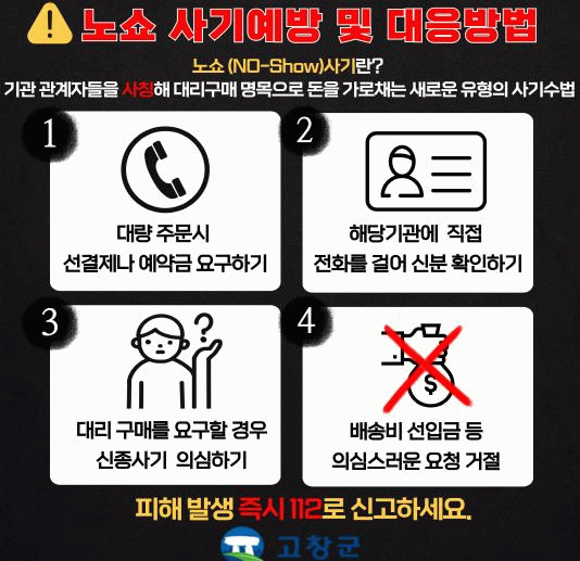 황민안 고창군 신활력경제정책관은 “군청에서 진행하는 모든 공식 업무는 반드시 대표전화나 부서 직원을 통해 확인해 주길 바란다”며 “고창군청 이름으로 의심스러운 공문이나 신분증을 받았을 경우 즉시 군청에 문의해 피해를 사전에 차단해 달라”고 말했다.