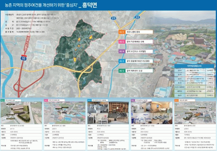 흥덕면 소재지 일원에는 ▲흥덕 체육관 건립 ▲작은 목욕탕 신축 ▲종합복지회관 리모델링 ▲흥덕 문화복지관(하모니센터) 증축 등을 통해 북부 생활권의 정주 환경 개선 및 통합 생활 서비스 공급 기능이 강화된다.
