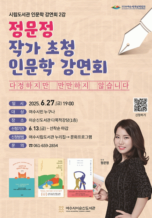 오는 13일 오전 9시부터 여수시립도서관 누리집을 통해 신청 가능하며, 선착순으로 80명 마감된다.