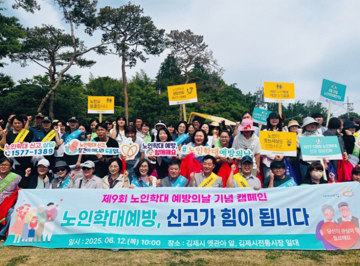 정성주 김제시장은 “범국민적 노인학대에 대한 인식을 높이고 관심을 유도하기 위해 이번 캠페인을 준비하게 됐다”며 “김제시의 어르신들이 존중받고 안전하게 생활할 수 있도록 노인복지 향상은 물론, 노인학대 예방과 보호체계 강화에 더욱 힘쓰겠다.”고 전했다.