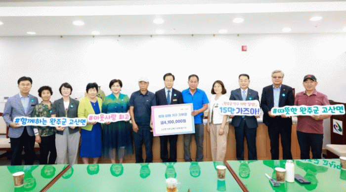 지난 11일 고산면 기관·단체장은 완주군청을 찾아 성금 410만 원을 전달했다.