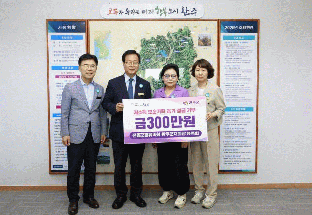 유희태 완주군수는 “호국보훈의 달을 맞아 유옥회 회장님의 이번 기부가 국가유공자분들께 조금이나마 보탬이 되길 바란다”며 “완주군도 보훈의 달을 맞아 다양한 행사를 준비하고 있으니 많은 분들이 참여해 좋은 시간을 보내시기 바란다”고 전했다.