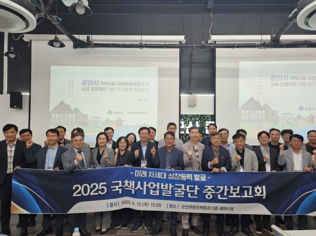 12일 군산콘텐츠팩토리에서 열린 이번 중간보고회는 군산시가 미래 차세대 성장동력 확보를 위해 추진 중인 국책사업 발굴의 중간 점검 성격으로, 부시장을 비롯한 정책자문단, 전북연구원, 각 국·소장 및 사업 담당자 등 60여 명이 참석했다.