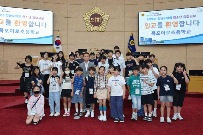 이날 행사에는 총 73명의 초등학생(목포 이로초 34명, 완도 노화초 39명)이 참여했으며, 학생들은 ▲조례안 처리체험 ▲의회 퀴즈 ▲3분 자유발언 등 다양한 프로그램을 통해 의회 활동을 직접 경험했다.