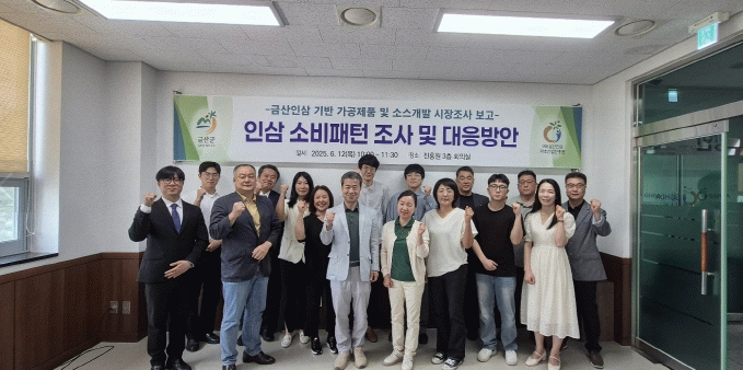 이번 시장조사는 금산군과 진흥원, 유통·컨설팅 전문기업인 팜넷 협동조합이 공동으로 수행했으며 금산인삼을 활용한 가공 제품이 기존의 건강기능식 중심 구조를 넘어 일상 속 생활 소비재로 전환의 필요성이 주요 과제로 도출됐다.