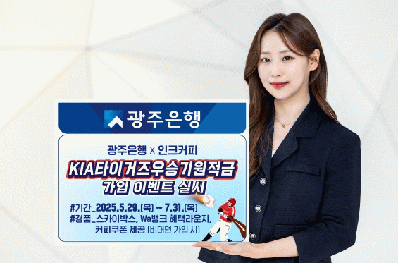 이벤트 대상 상품인 ‘KIA타이거즈우승기원적금’은 지역 명문구단 KIA타이거즈의 우승을 기원하며 지역민들과 함께 응원하는 광주은행 대표 스테디셀러 시즌 상품이다. 월 10만 원부터 최대 100만 원까지 가입 가능한 정액적립식 상품으로, 우대금리 포함 최고 연 3.85%(기본 연 2.60%)의 금리를 제공한다.(2025.06.13. 기준)