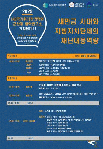 이번 포럼은 새만금 사업의 안정적 추진과 효과적인 재난관리체계 구축을 위해 실질적인 행정 주체의 요건을 진단하고, 그에 따른 대응 방안을 마련하고자 기획됐다.