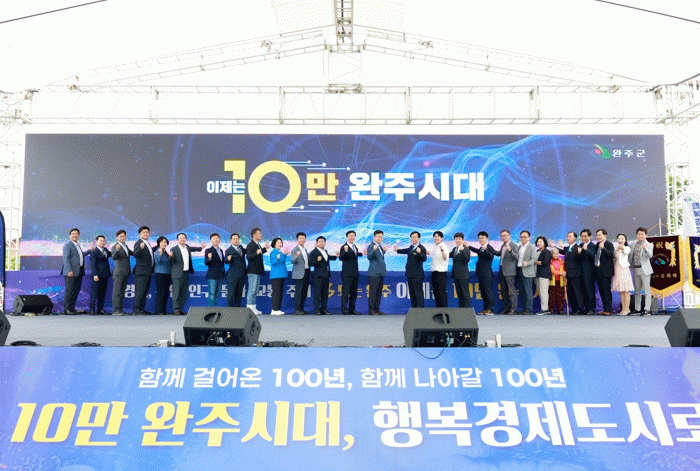 이번 행사는 인구 10만 명 달성을 기념하고, 군민의 화합과 자긍심을 드높이는 자리로 마련돼 군민과 유희태 완주군수, 유의식 완주군의회 의장, 안호영 국회의원을 비롯해 자매도시인 박종태 칠곡군 부군수, 명예군민 등 각계각층 내빈이 함께한 가운데 열렸다.