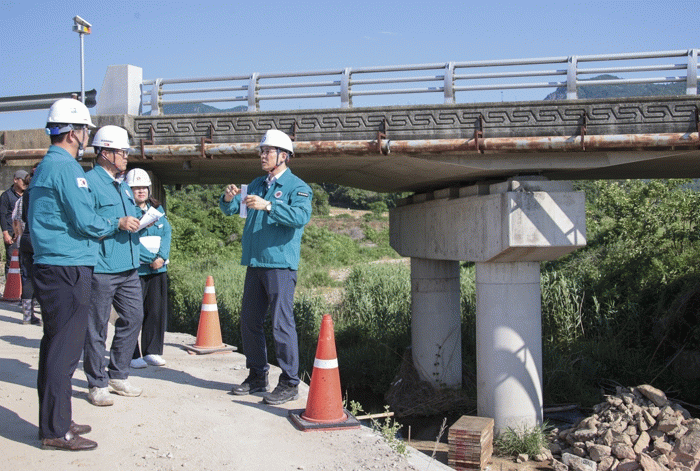 현재, 영암군 군민안전과 등 시설물 소관 13개 부서는 과거 피해 발생지역을 중심으로 재해피해 우려지역 안전점검을 실시 중이다. 그 연장선에서 우승희 영암군수는 11일 미암면 노적소하천 폭우피해복구현장을 방문해 공사 관계자 등에게 공사 현황을 듣고, 꼼꼼한 피해 재발 방지 작업을 당부했다.