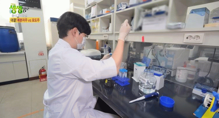 방송에서는 연구원이 개발 중인 복분자 와인과 일반 레드와인을 비교한 항산화 성분 분석 결과를 공개했다.