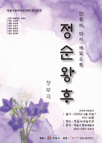 정읍시는 오는 20일 오후 7시 30분, 정읍사예술회관에서 정읍시립국악단의 정기공연 정순왕후 ‘단종비 다시 새빛으로’를 무료로 개최한다.