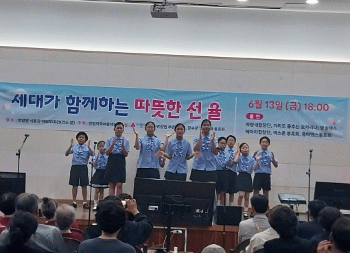 공연은 유치부부터 중학생까지 다양한 연령의 아이들로 구성된 ‘파랑새합창단’, 70대에서 90대까지 어르신이 모여 선율을 이루는 ‘메아리합창단’, 5060대 음악 애호가 모임인 ‘색소폰동호회’, 4060대 여성들로 구성된 ‘줌마댄스’ 팀이 차례로 무대에 올라 각기 다른 세대의 개성과 열정을 선보이며 깊은 감동과 즐거움을 전했다.