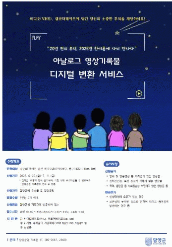 이번 사업은 “20년 전의 추억, 2025년 한여름에 다시 만나다”라는 주제로, 과거의 감동을 디지털 영상으로 되살려 가족과 함께 TV, 컴퓨터, 스마트폰으로 공유할 수 있도록 지원하는 것이다.