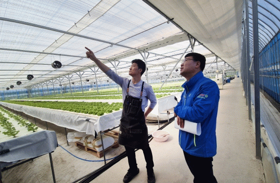 현장에서는 벼, 고추, 인삼 등 주요 농작물과 시설물을 살피며 배수로 정비, 비닐하우스 피복 비닐 보수, 환기창 점검 등 시설물 관리 요령 등을 공유 중이다.